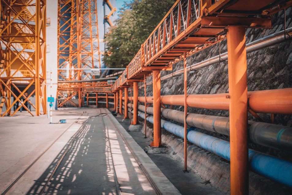 順著延綿不斷的階梯到達了蘑菇视频红色LOGOTST輸送帶鋼繩芯探傷(機站)係統的前置設備安裝地方。