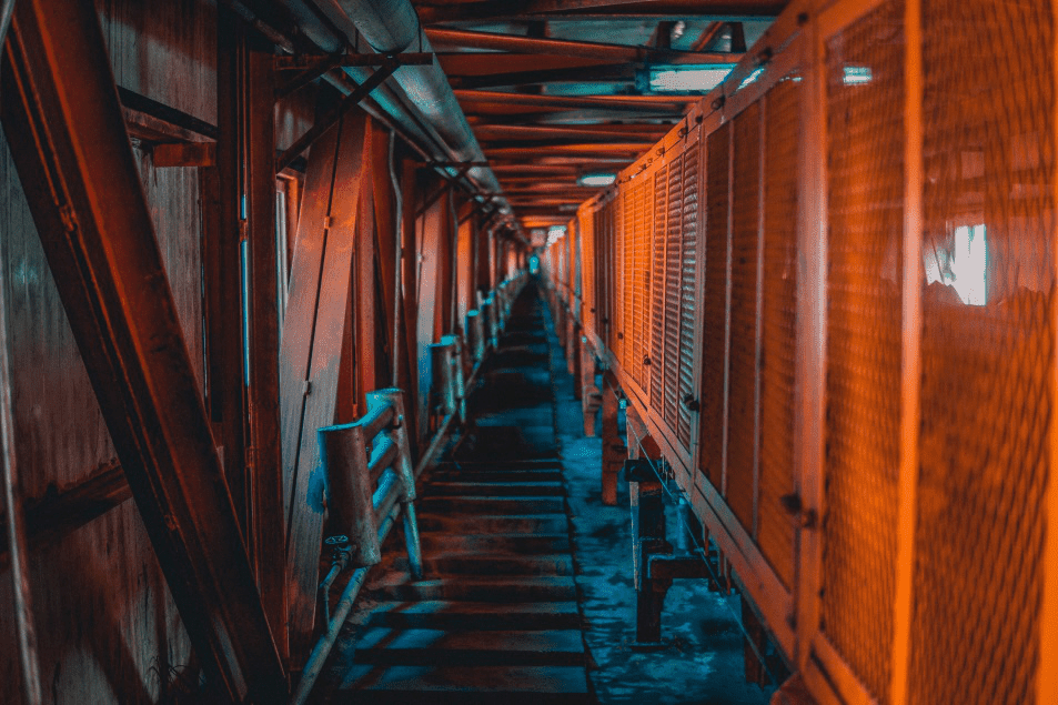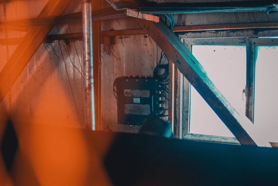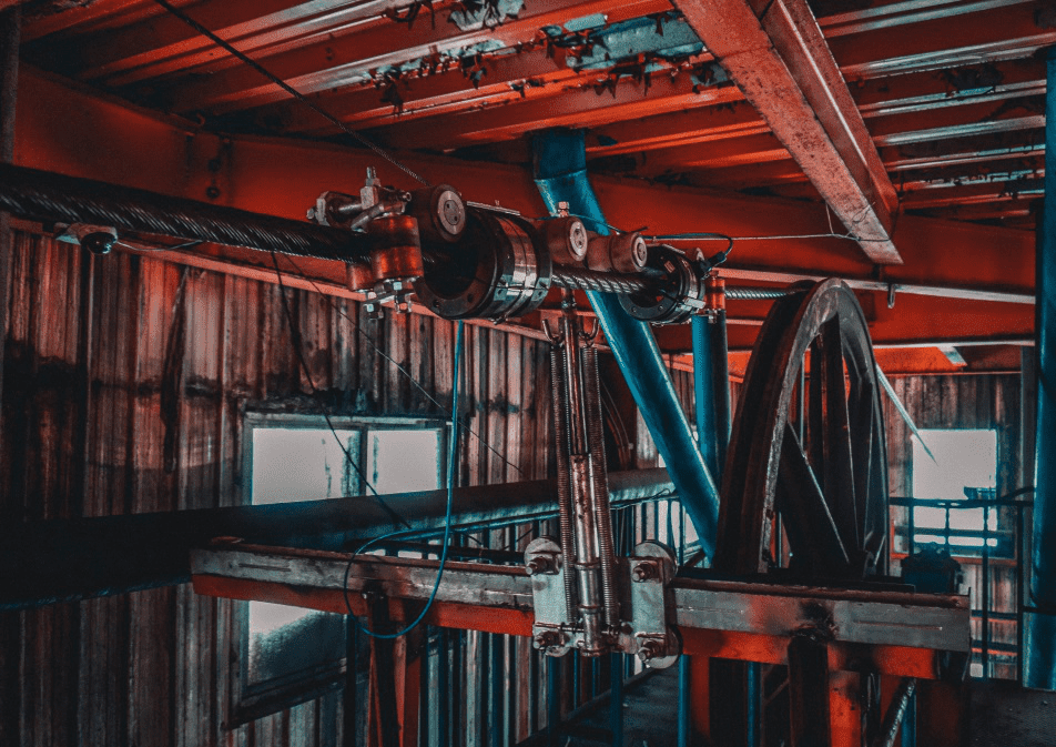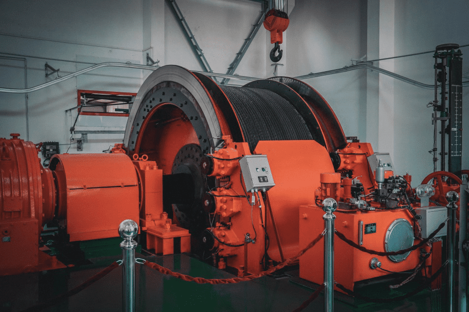 然後蘑菇视频红色LOGO來到副井提升機機房
