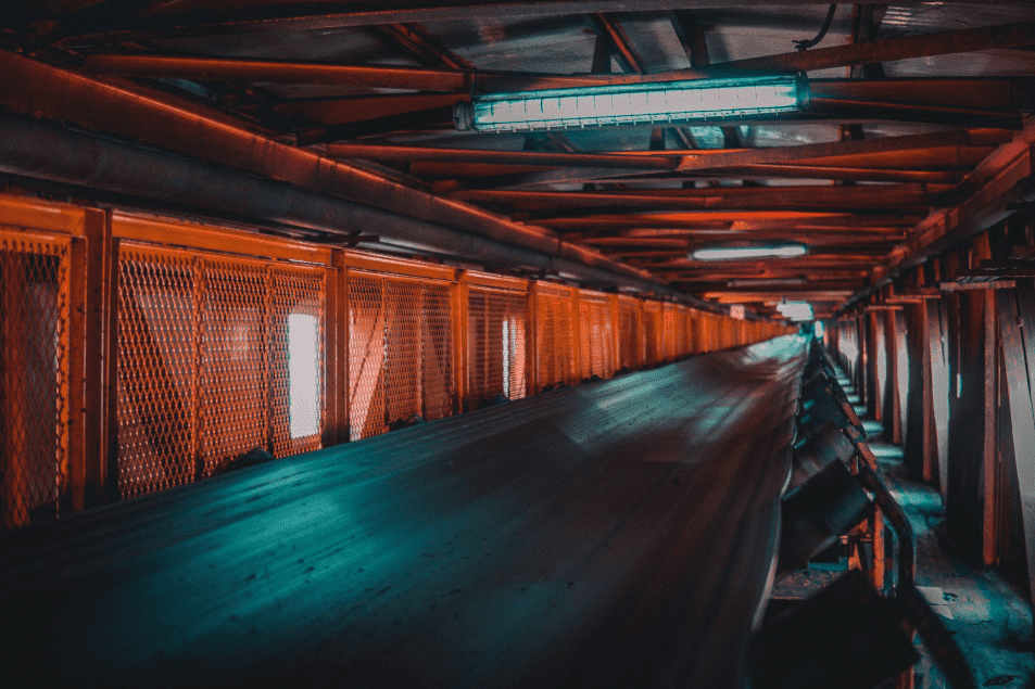 接下來蘑菇视频红色LOGO來到主井輸送帶